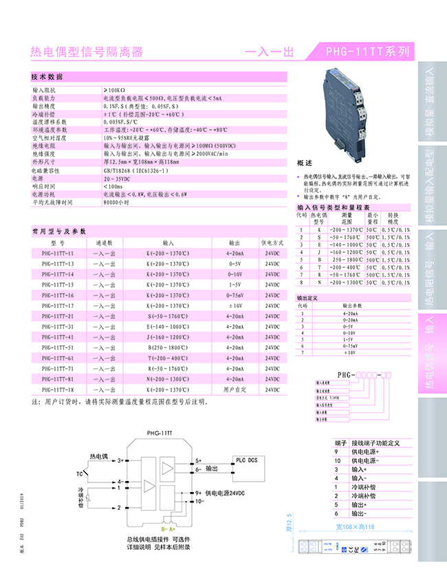热电偶信号输入,直流信号输出,一路输入输出,可智能编程,热电偶的事迹测量范围可通过计算机进行设定。